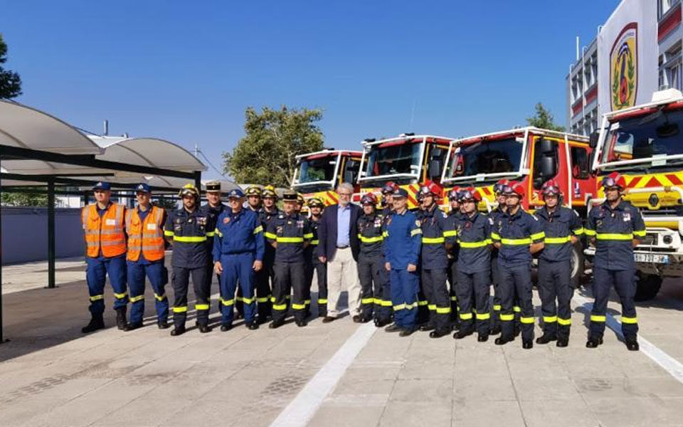 Climate Crisis and Civil Protection Minister Christos Stylianides welcomed the French unit at a welcoming ceremony at the Fire Service Academy. “I am certain that your presence here today, considering the well-known difficulties that France is facing [with wildfires], is proof of what we call European solidarity and fraternal relations between France and Greece,” he said.