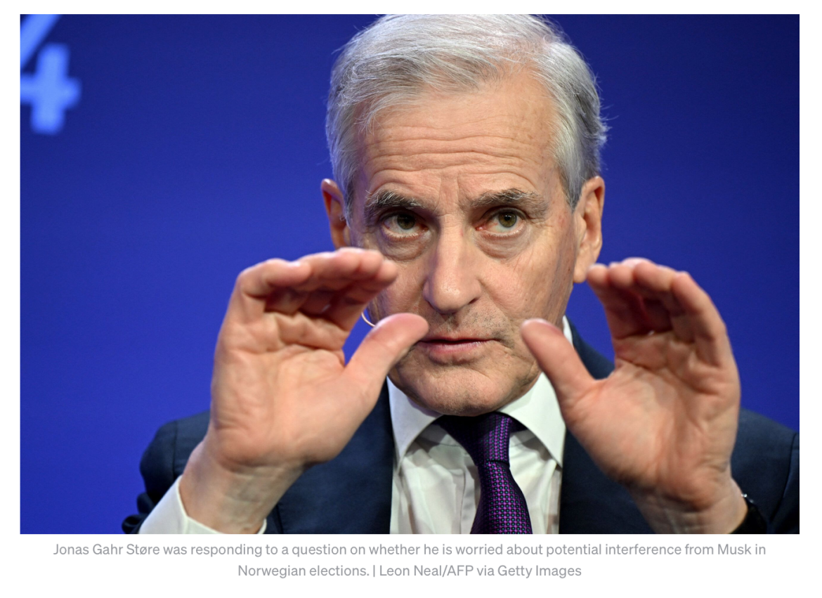 Støre was responding to a question on whether he is worried about potential interference from Musk in Norwegian elections.