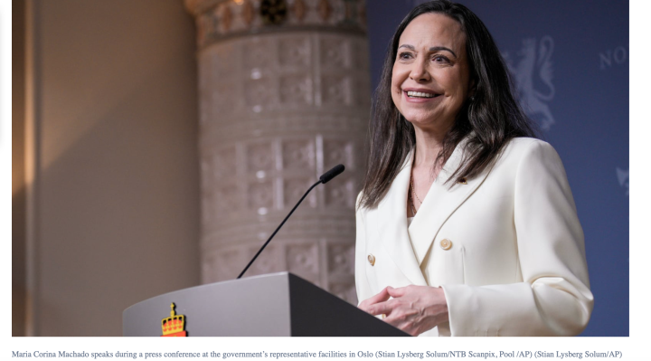 On Thursday Ms Machado was received by Norwegian Prime Minister Jonas Gahr Store, who said his country is ready to support a democratic Venezuela in “building new and sound institutions”.